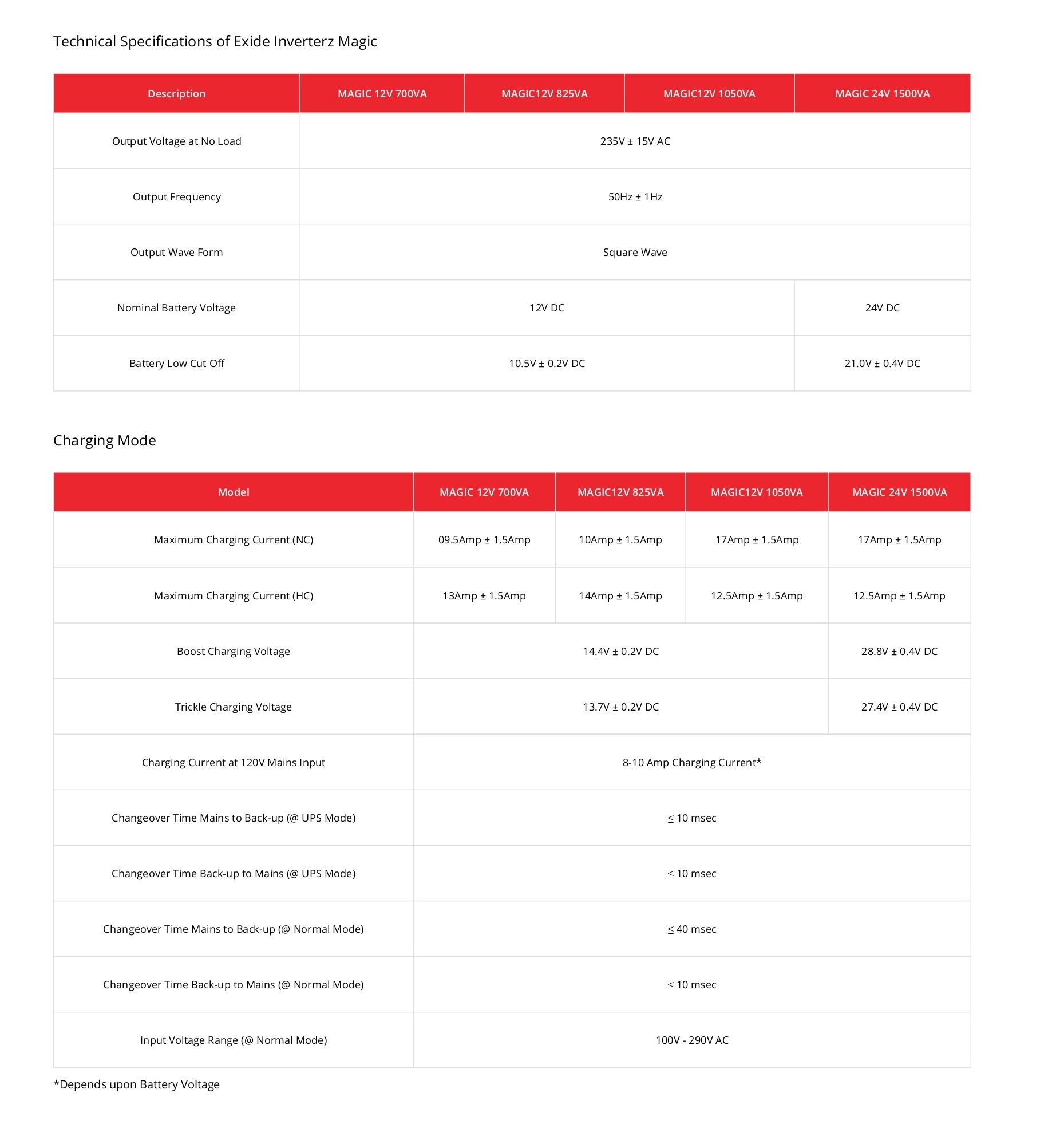 Battery Charging - 3 Nos. Selectable Option:9A/11A/13A/ manual battery charging