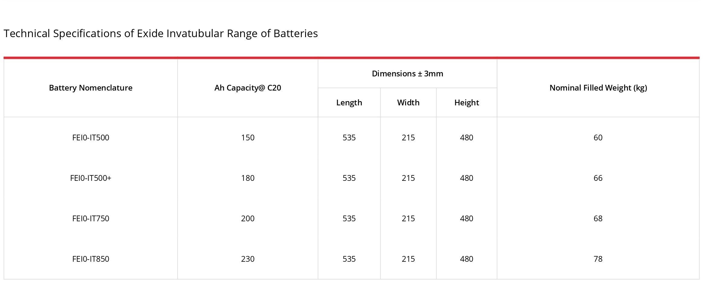 Features of EXIDE INVA TUBULAR(IT500) Batteries